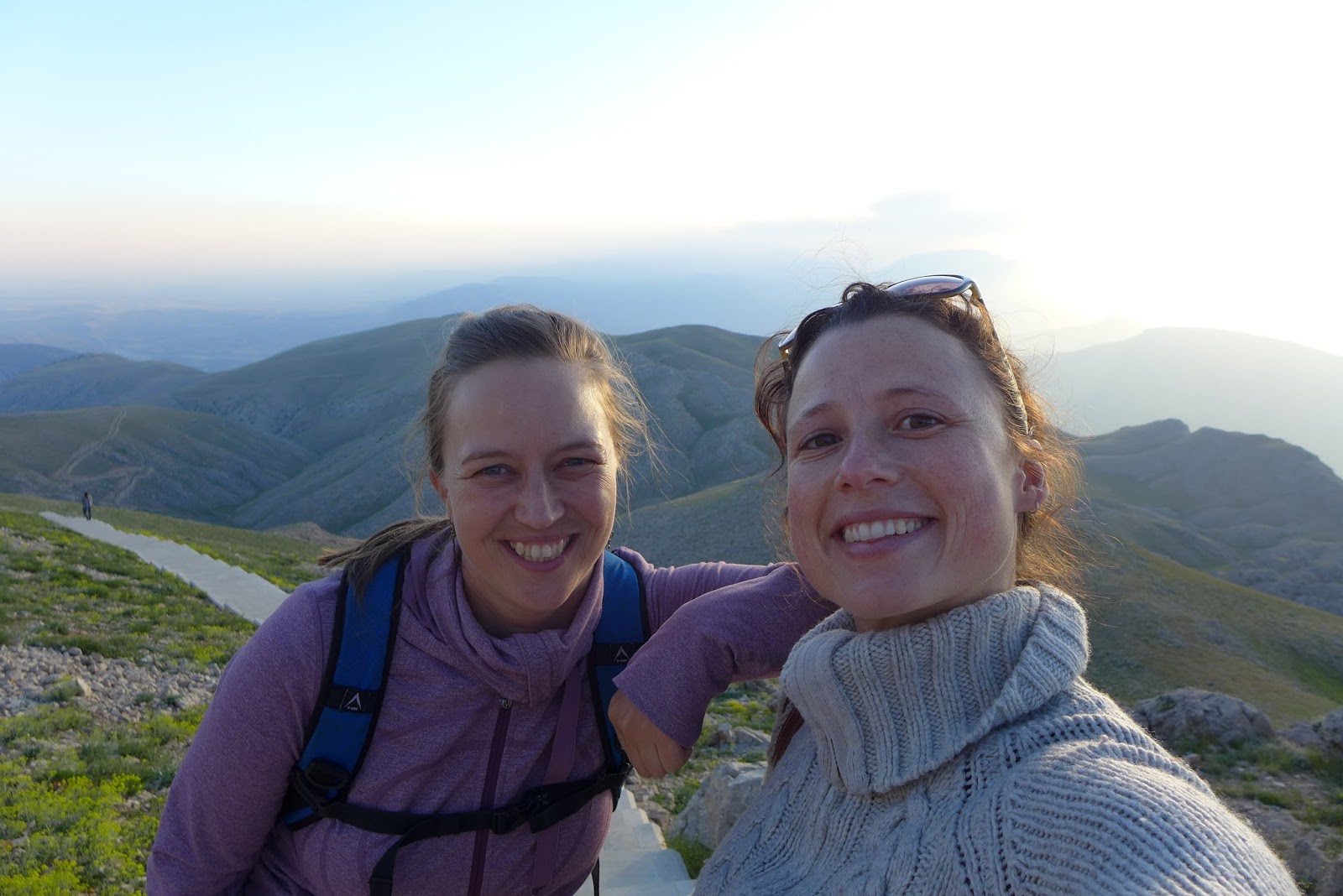 Finally, we arrived to the base of Nemrut and hiked the short trail to get to the eastern terrace, where we were greeted by the remains of a royal tomb and temple- decapitated throned figures with their large heads laying at their feet- built under the reign of King Antiochus, who promoted himself to be god-like. In an astute and practical political move to unify the kingdom at the time, he promoted a religion with an assortment of gods from the various religions of the people under his rule, with himself amongst them. This merging of gods is seen in the diverse heads at Nemrut which include those of eagles, humans, and a lion and whose origins were Armenian, Greek, and Persian.